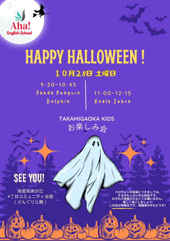 Spooky fun! October 14, 2023 By chatsensei For the big kids in our TAKAMIGAOKA classroom 高屋東広島市 For the little ones in our NOBORI classroom 広島市